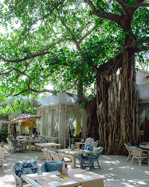 Dappled sunlight on soft arm chairs. A white pebbled courtyard punctuated by bougainvillea. Worlds collide and time stops in this Mogul mansion turned alfresco Mediterranean restaurant. Casual elegance with its beautiful white walls, a vast Banyan canopy, and a stunning, star-lit, and a tree-top terrace bar under the shadow of the Qutub Minar makes it the best restaurant in Delhi. Welcome to a space so stunning that the Condé Nast Traveler US rated this multi-award winning restaurant as one of the world’s best new restaurants in 2004 and then was ranked at number 6 in the Top restaurants list in India in 2024.