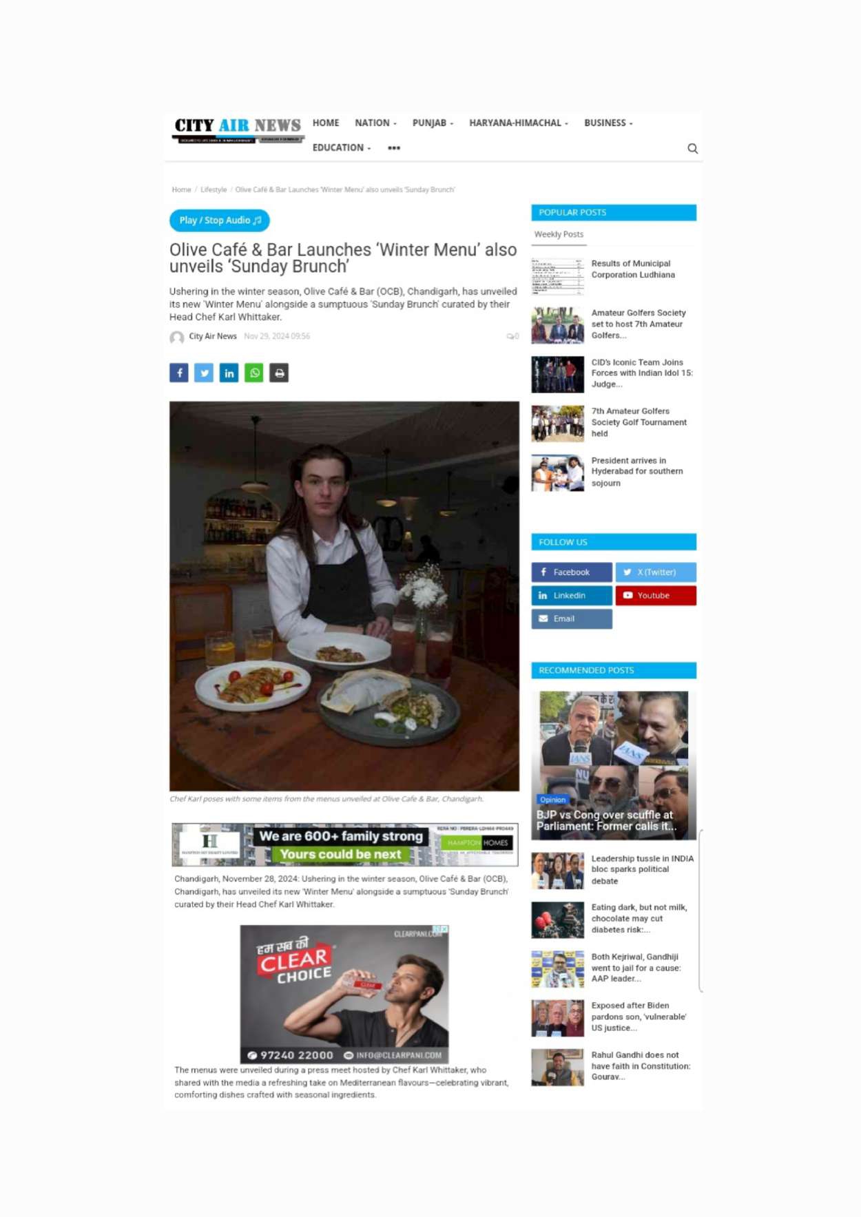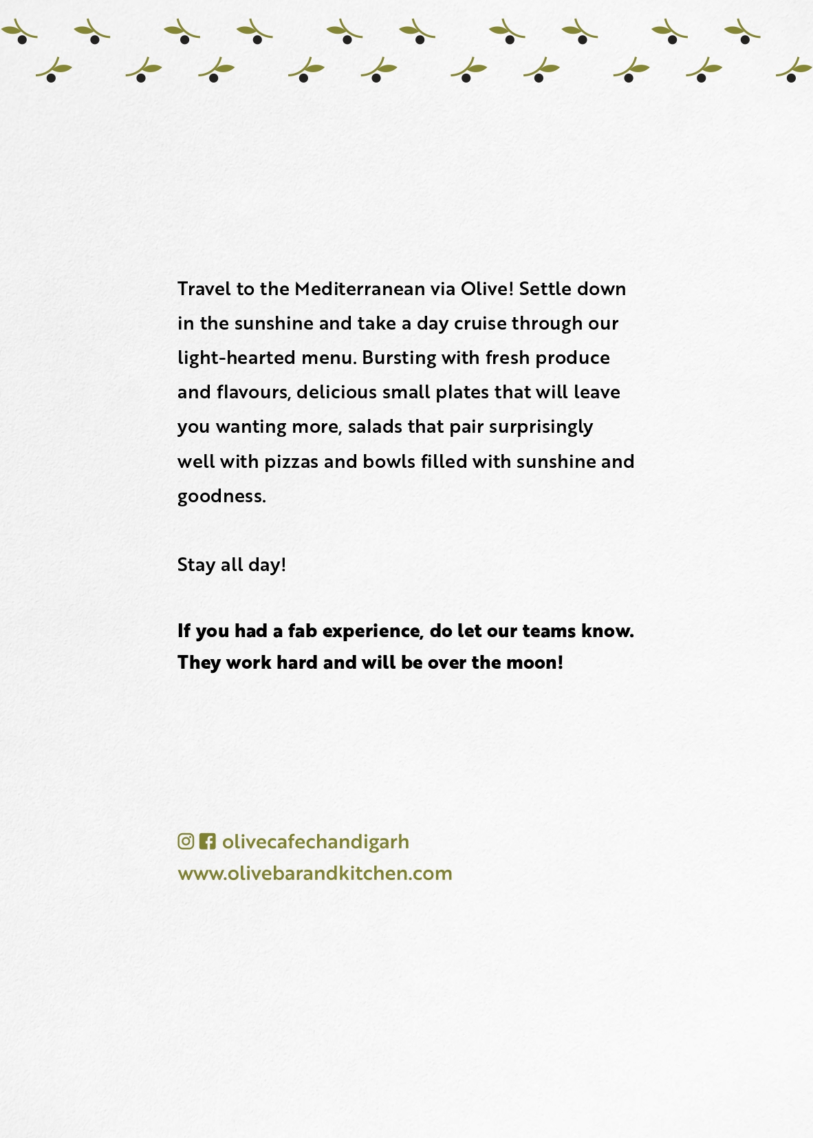 Wonderfully laid back, deliciously friendly, and filled with the charm and romance of the Olive we know and love, Olive Café & Bar is a slice of the Mediterranean in the beautiful city of Chandigarh.