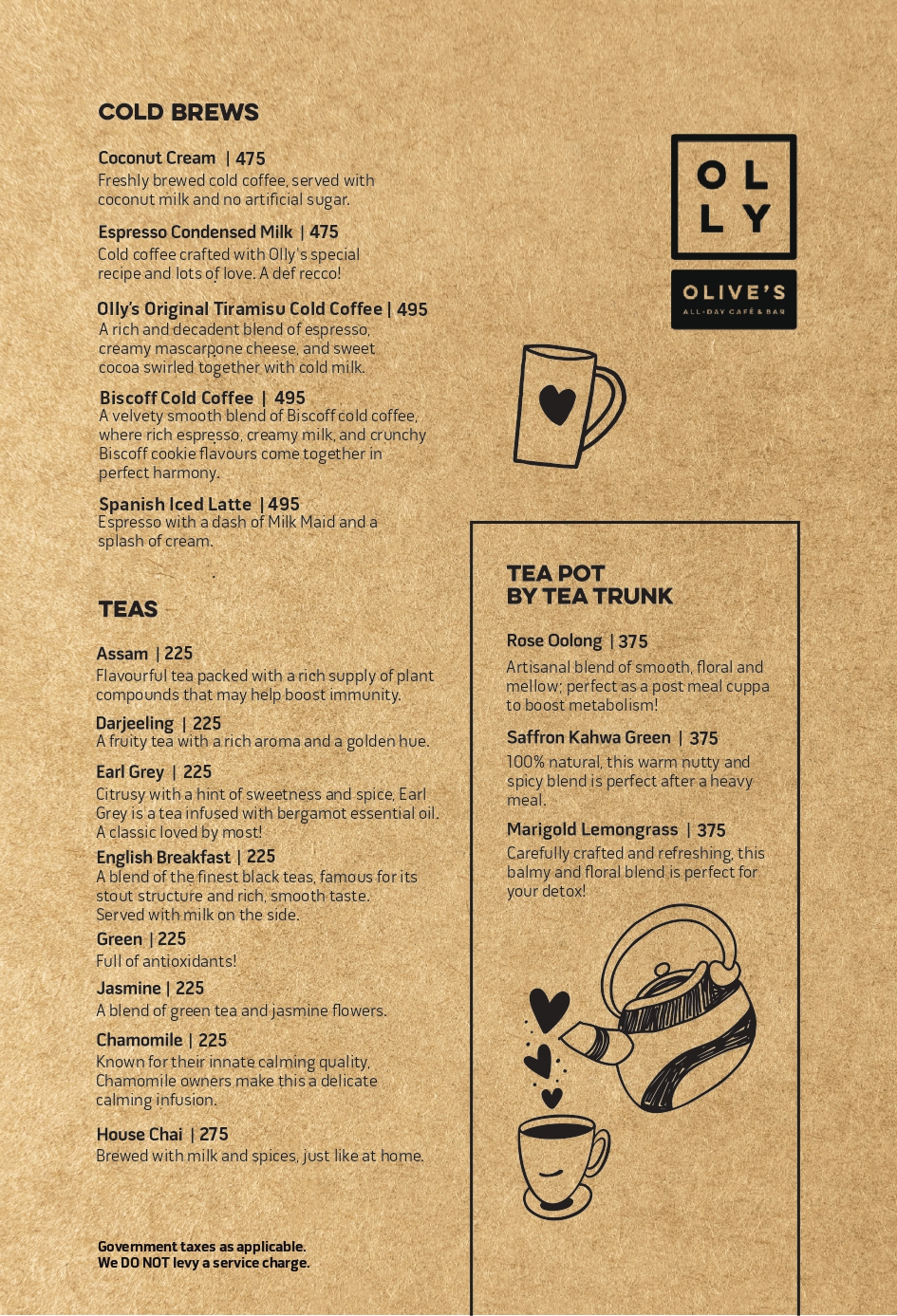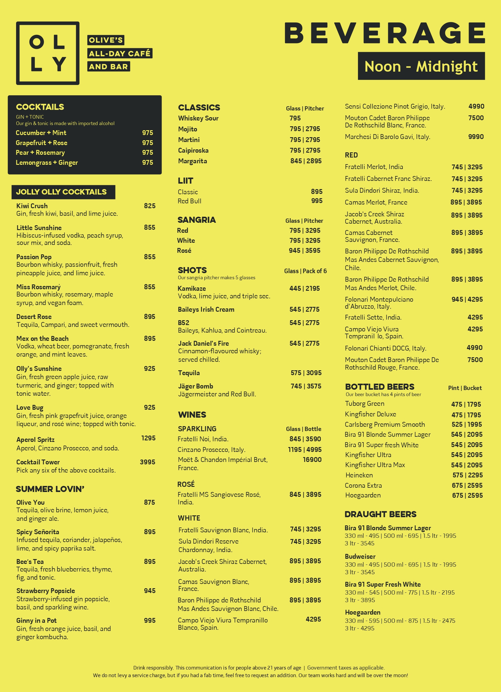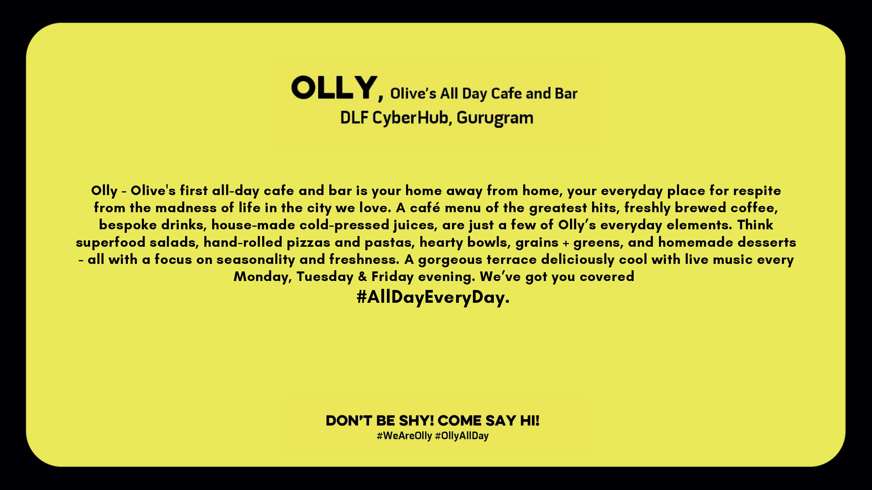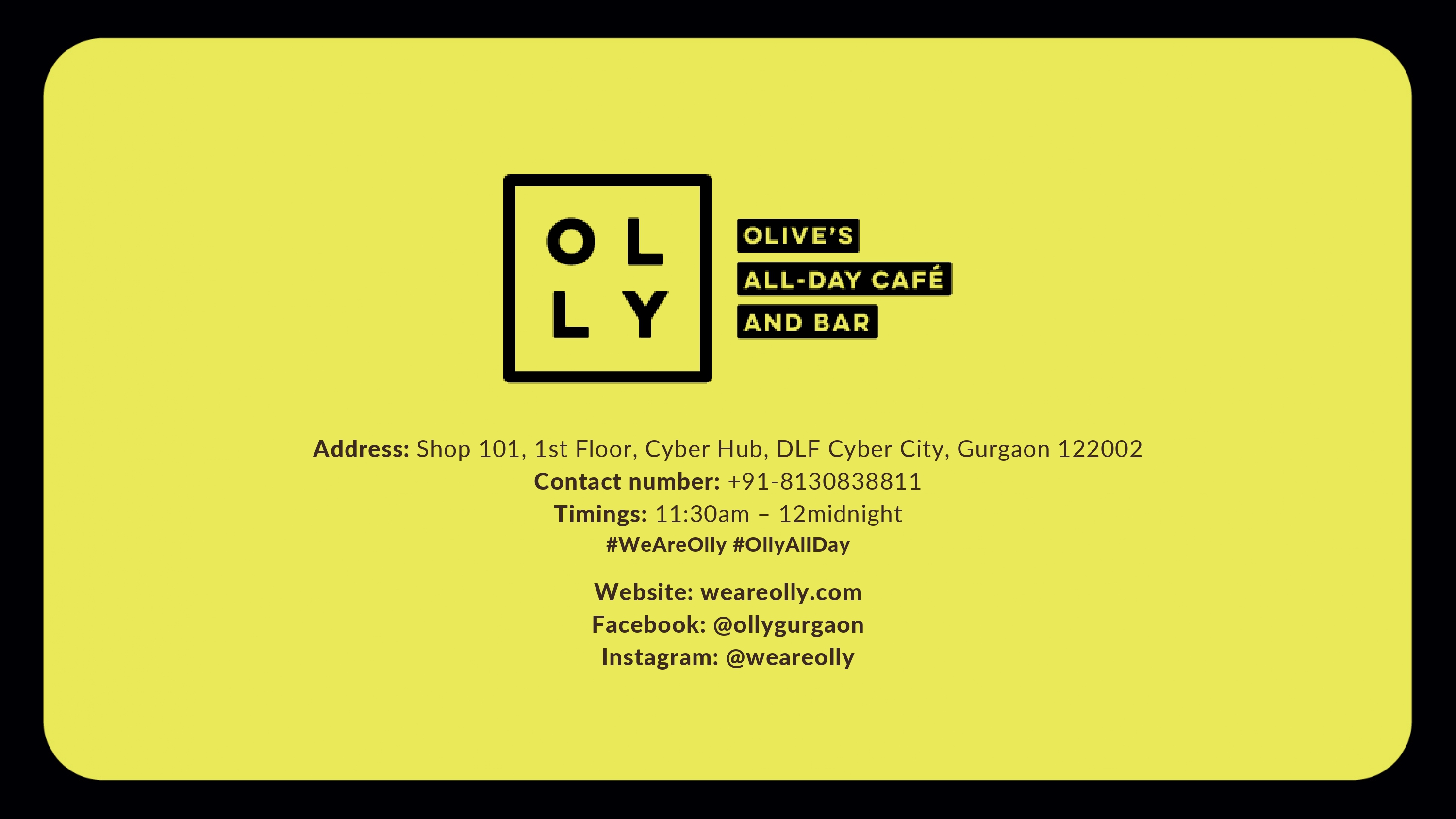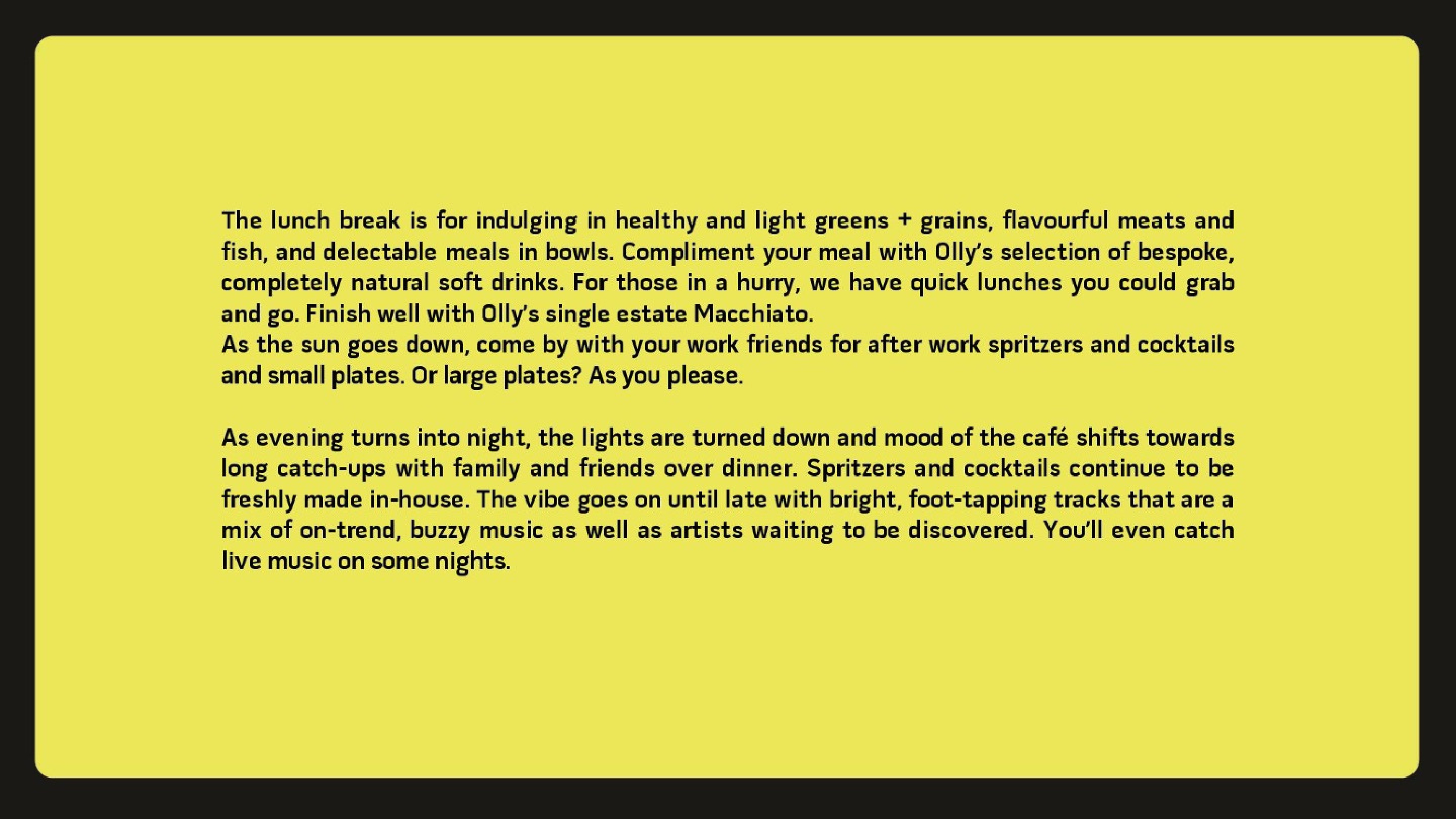 Olly, Olive’s first all day Café & Bar is your home away from home, your everyday place for respite from the madness of life in the city we love.